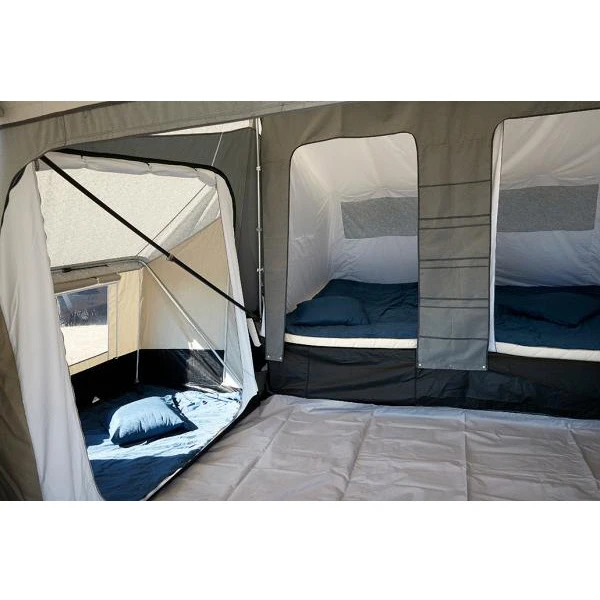 Die praktische Gästekabine Sand bietet zusätzlichen Platz für Schlafplätze und als Stauraum. Die Gästekabine Sand hat einen wasserdichten PVC-Boden und kann vom übrigen Zelt als separater Raum abgetrennt werden.