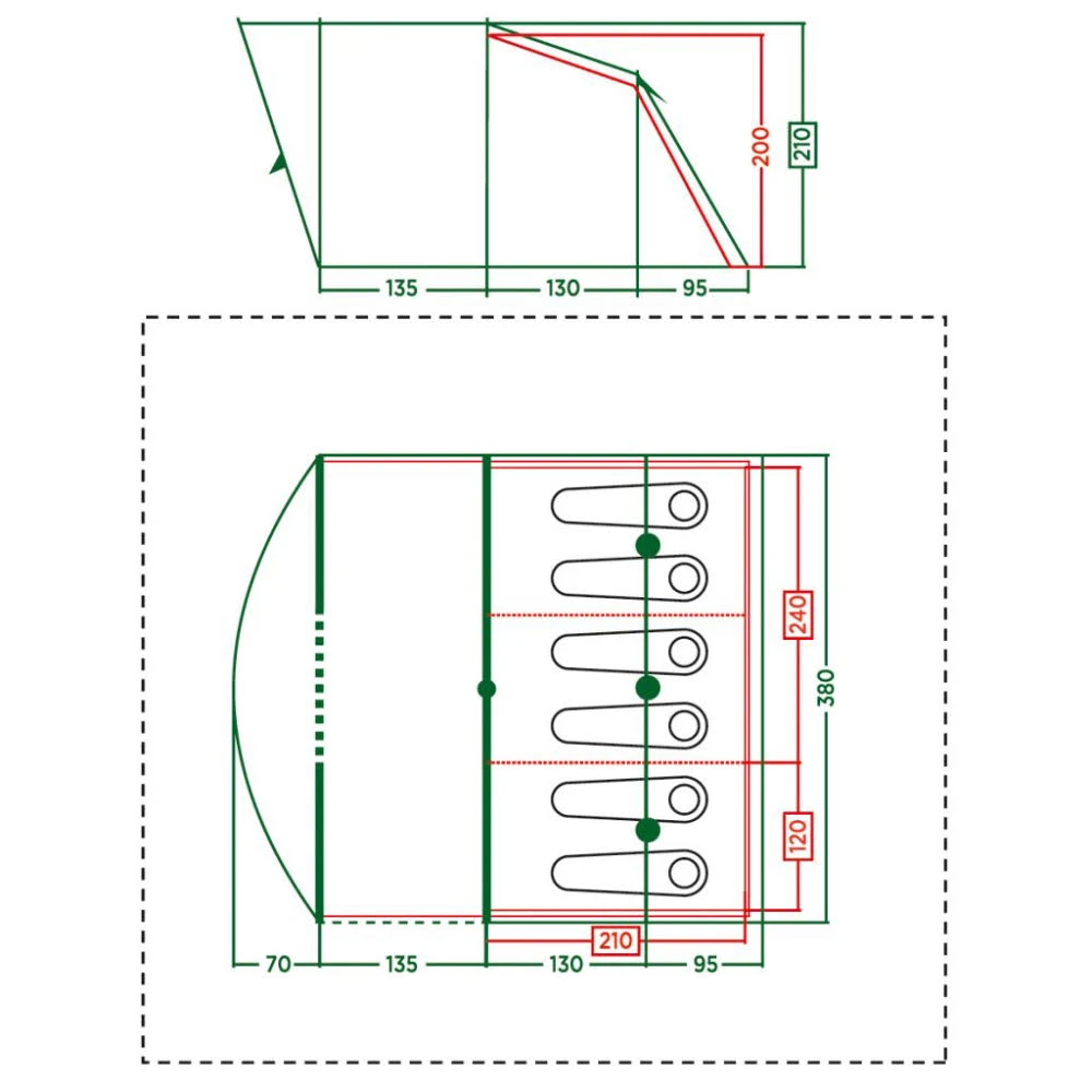 Das Vail ist mit seinem großzügigen Schlafbereich hervorragend geeignet für einen Ausflug mit der Familie oder mit Freunden. Die Ventilationsöffnungen sorgen für eine hervorragende Belüftung und mit UV Guard und WS 4000 mm sind Sie vor Witterungen geschützt. Maximale Flexibilität bieten die beiden Türen mit Moskitonetz. Die Taschen im Inneren bieten zusätzlichen Stauraum und auch die praktischen Öffnungen für Kabel erhöhen den Komfort. Das leichte und zugleich stabile Fiberglasgestänge ermöglicht in Kombination mit der Tragetasche einen einfachen Transport.