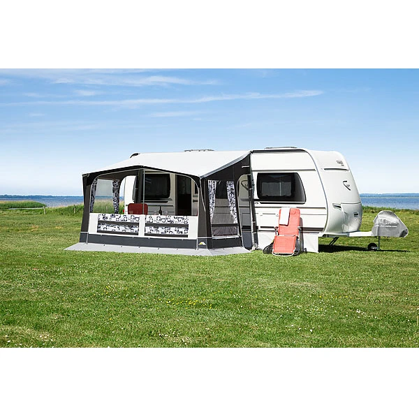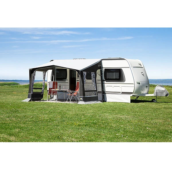 Die Eleganz unterstreicht die Klasse des Modells Jazz und die Souveränität. Ein robustes Dach, das atmungsaktive Gewebe in den Wänden zusammen mit den besonderen Lüftungsfenstern in den Seiten gewähren einen Komfort, den Sie an Ihren Reisezielen oder am saisonalen Standort nicht missen möchten. Einfach überzeugend. Für Wohnwagen mit bis zu 250 cm Kederschienen-Höhe.