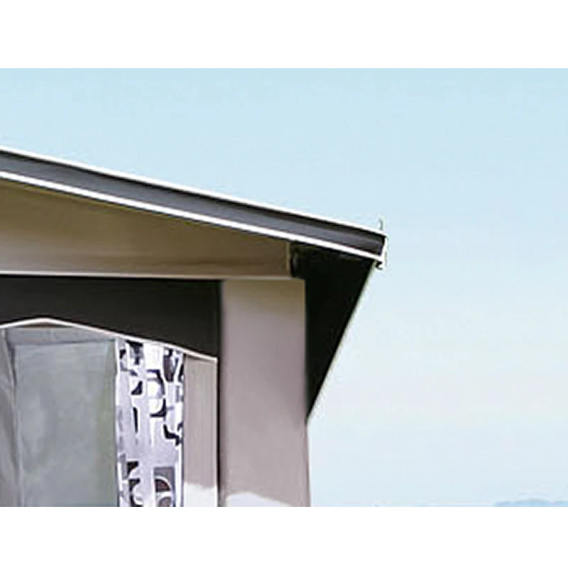Saison- und Ganzjahrescamper lieben den großzügigen Wohnraum. Deshalb vereinen wir mit dem Dachschnitt FUN das Hauptzelt und den rechtsseitigen Erker unter einem durchgängigen Dach. In Verbindung mit der Dachform PRO genießen vor allem Profis die Vorzüge der beiden starken Charaktereigenschaften: Hier ein Vorzelt mit integriertem Erker, der viel Raum im Zelt schafft. Dort die universell nutzbare Dachform, perfekt vor allem bei häufigen stärkeren Winden. Das mit Gestänge und Kanälen verstärkte Vordach und die beiden seitlich eingenähten Windecken stabilisieren zusätzlich. Vorgesehene Regenrinnenkeder an den Übergängen zu den Zeltseitenwänden ermöglichen die Anbringung von Regenrinnen für geordnete Wasserableitung.