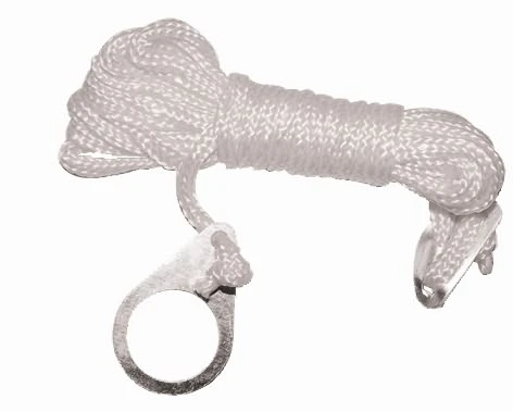 Zeltleine mit 3-Lochspanner und Heringslasche. Ringdurchmesser 25 mm.
