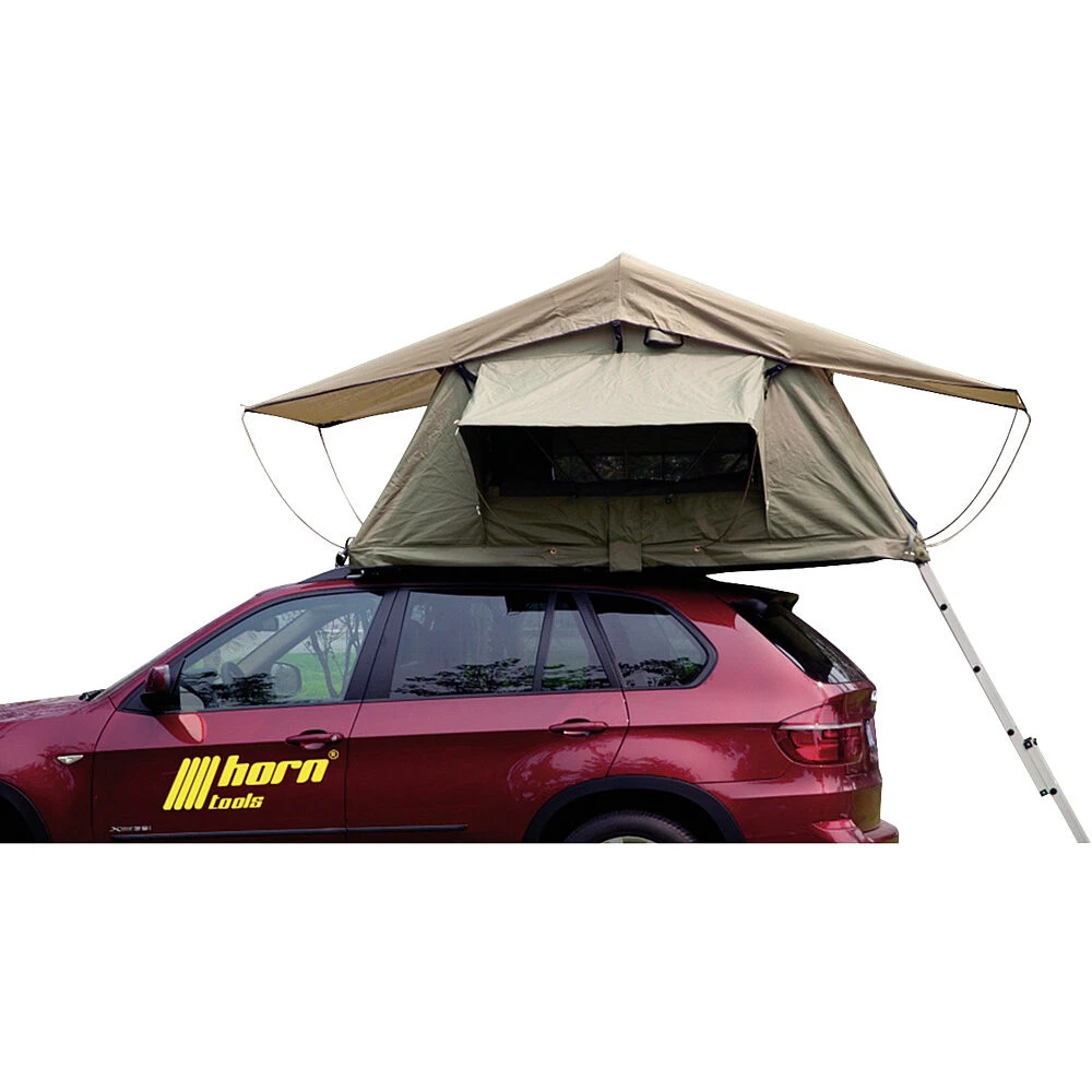 Das robuste Dachzelt von horntools! Unser Dachzelt ist für den Extremeinsatz gebaut, durch das wasserdichte Polyester Zeltdach auch für unsere Regionen hervorragend geeignet. Das Zelt ist in Minuten einsatzbereit und passt auf jeden handelsüblichen PKW.