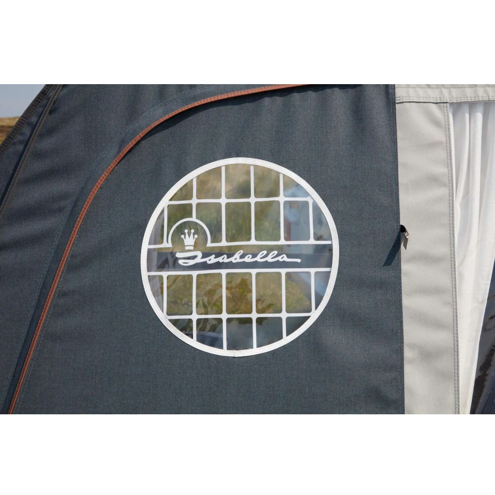 Besondere Details: Großes Vordach mit Luftkanälen, nur ein Aufblaspunkt für das gesamte Luftgerüst, Isabella Air Luftsystem mit separierbaren Schlauchelementen, Lichtsegmente im Dach (keine klare Fensterfolie), Aufblasbare Abdichtung der Seitenwände zum Wohnwagen, zwei große Lüftungsfenster mit Moskitonetz in beiden Seitenteilen, atmungsaktives Isacryl Gewebe, 3- lagige Luftkammern, Erweiterungsmöglichkeiten beidseitig, Doppelkeder für verschiedene Kederstärken.
