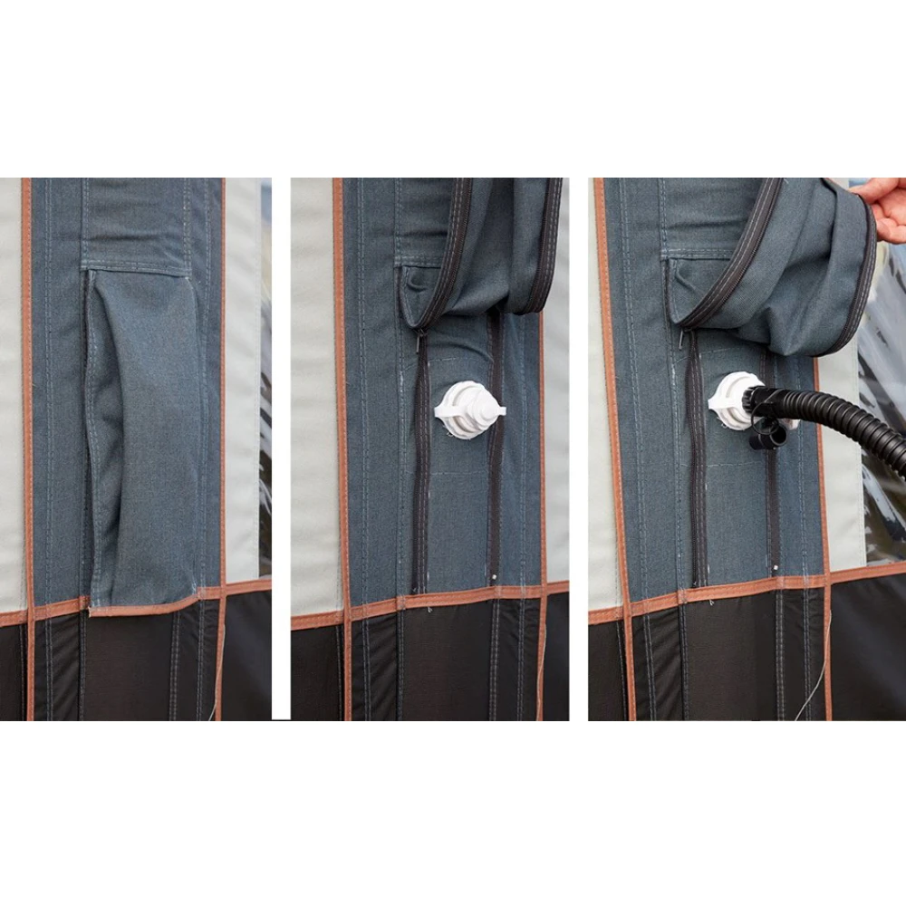 Im Cirrus North ist Platz für die ganze Familie. Mit einer Raumtiefe von 275 cm und senkrechten Seitenwänden bietet das Cirrus viel Platz. Wer mehr möchte, kann zudem auf beiden Seiten eine Air Erweiterung anbauen. Insgesamt könnten Sie so den Wohnraum sogar verdoppeln! Da die Reißverschlussverbindungen für die Erweiterungen der Zeltform folgen entsteht der Eindruck, von innen, als gehörten die Erweiterungen zum eigentlichen Vorzelt.