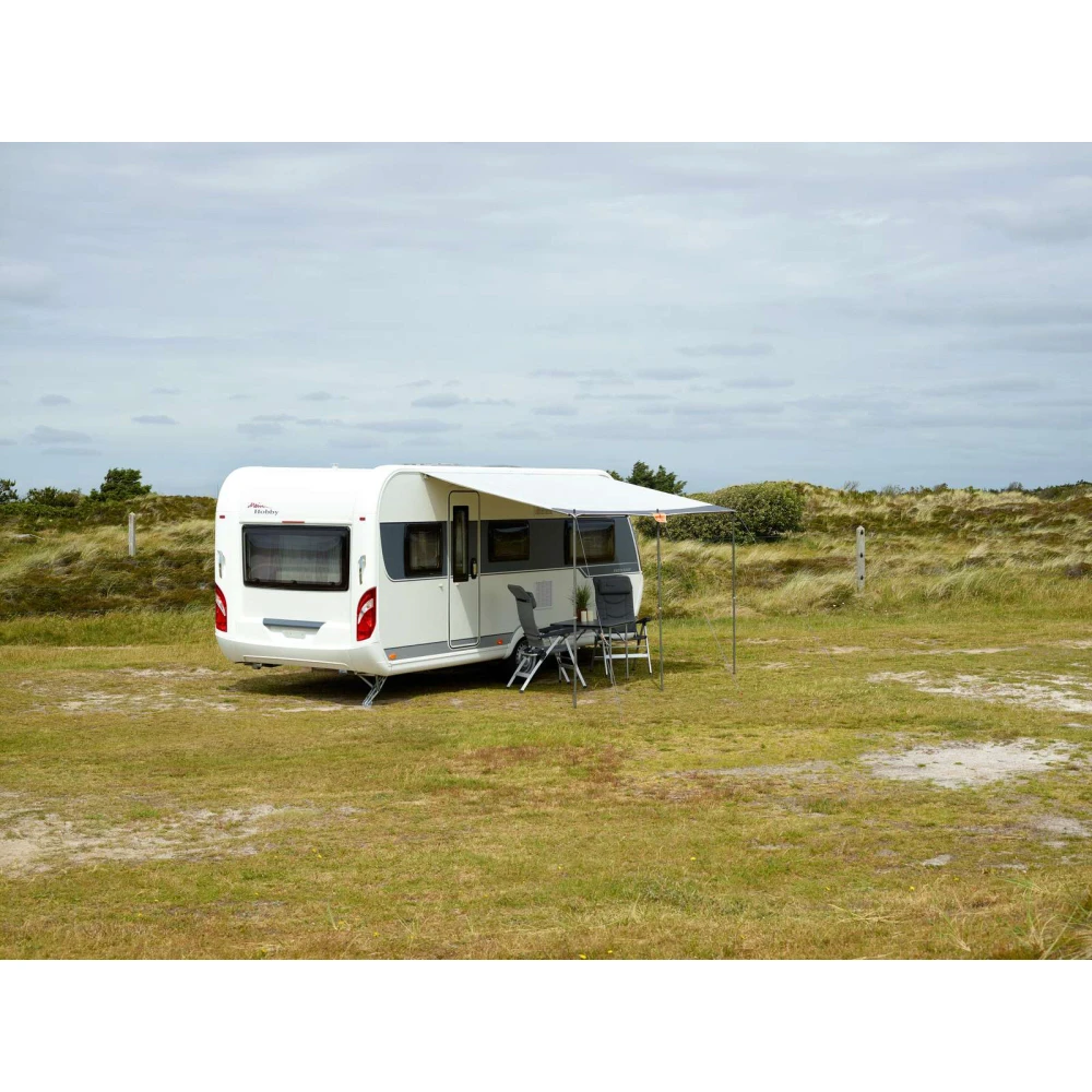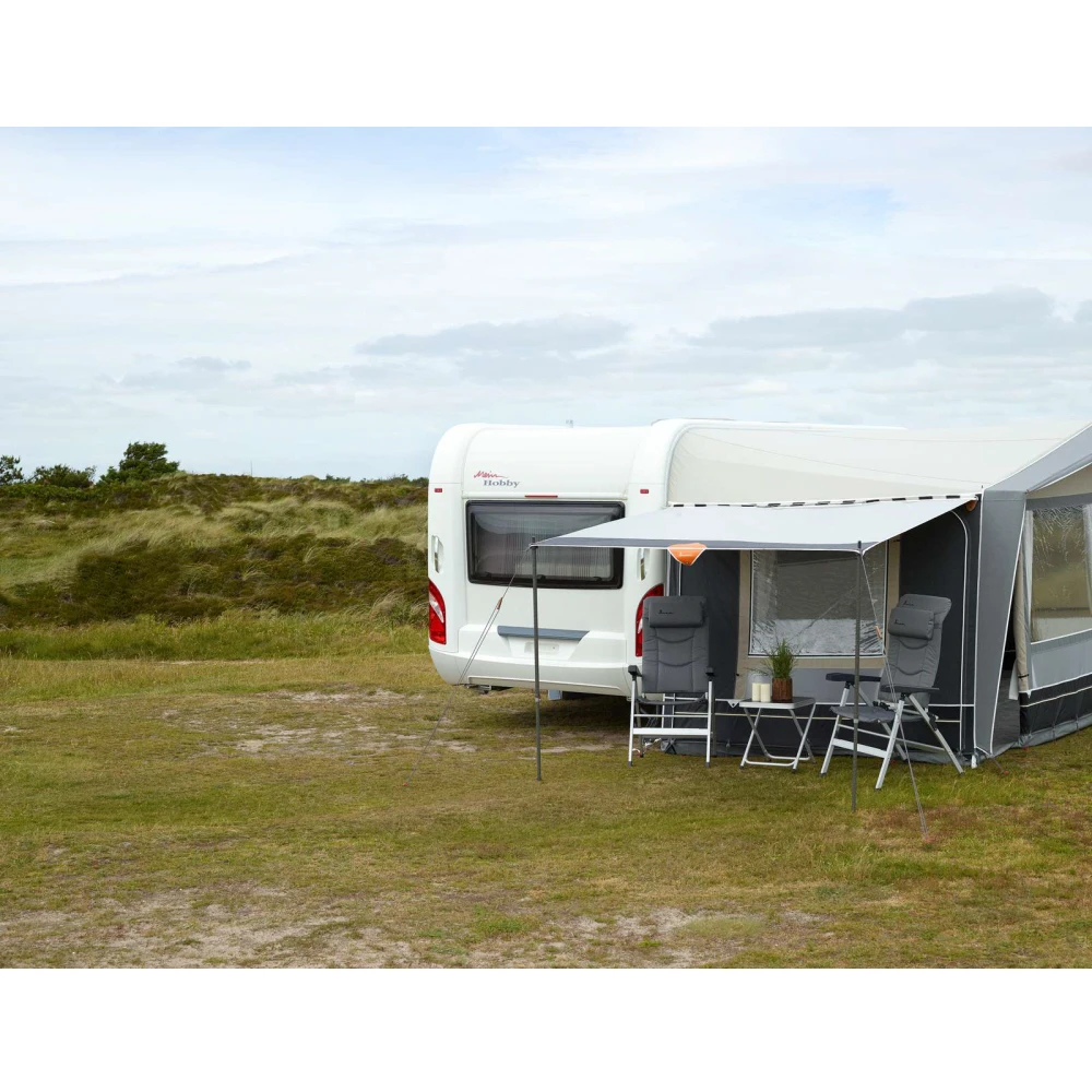 Ob als einfacher Schattenspender am Wohnwagen, Überdachung des Bug- und Heckbereiches (wenn Keder am Fahrzeug vorhanden) oder seitliches Dach am Vorzelt, es gibt viele Einsatzmöglichkeiten. Die Seitenwand ist so konstruiert, dass sie rechts sowie auch links (je nach Bedarf) montiert werden kann.