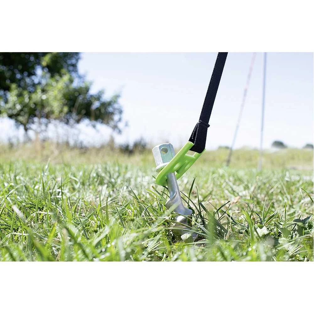Mittels neuem Universaladapter für Markisen, Sonnensegel und Vorzelte können Sie beliebig abspannen und die Systeme wechseln. Der ebenfalls neue Heringsadapter passt in nahezu alle gängigen Schraub- und Schlagheringe. Für Vorzelte mit 2 Zeltstabspitzen