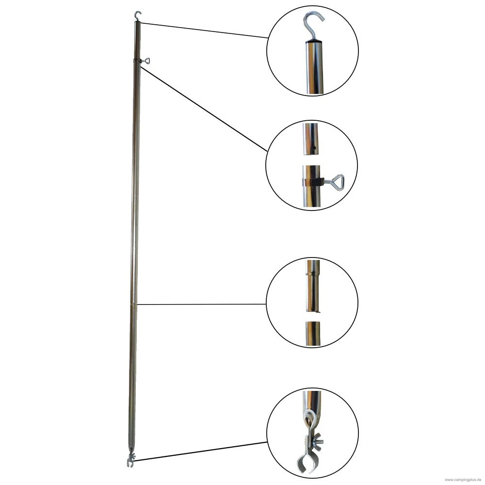Teleskopierbare Dachhakenstange mit 1 Schelle und 1 Haken. Geeignet für Vorzelte, Sonnendächer oder Sonnensegel.